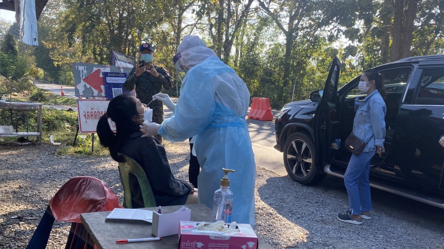 เจ้าหน้าที่สาธารณสุขอำเภอบ้านหลวง ได้ให้บริการตรวจ ATK ผู้ที่เดินทางเข้าพื้นที่จังหวัดน่าน ในช่วงเทศกาลปีใหม่ 2565 ณ ด่านคัดกรองบ้านนาหวายใหม่ ต..ป่าคาหลวง